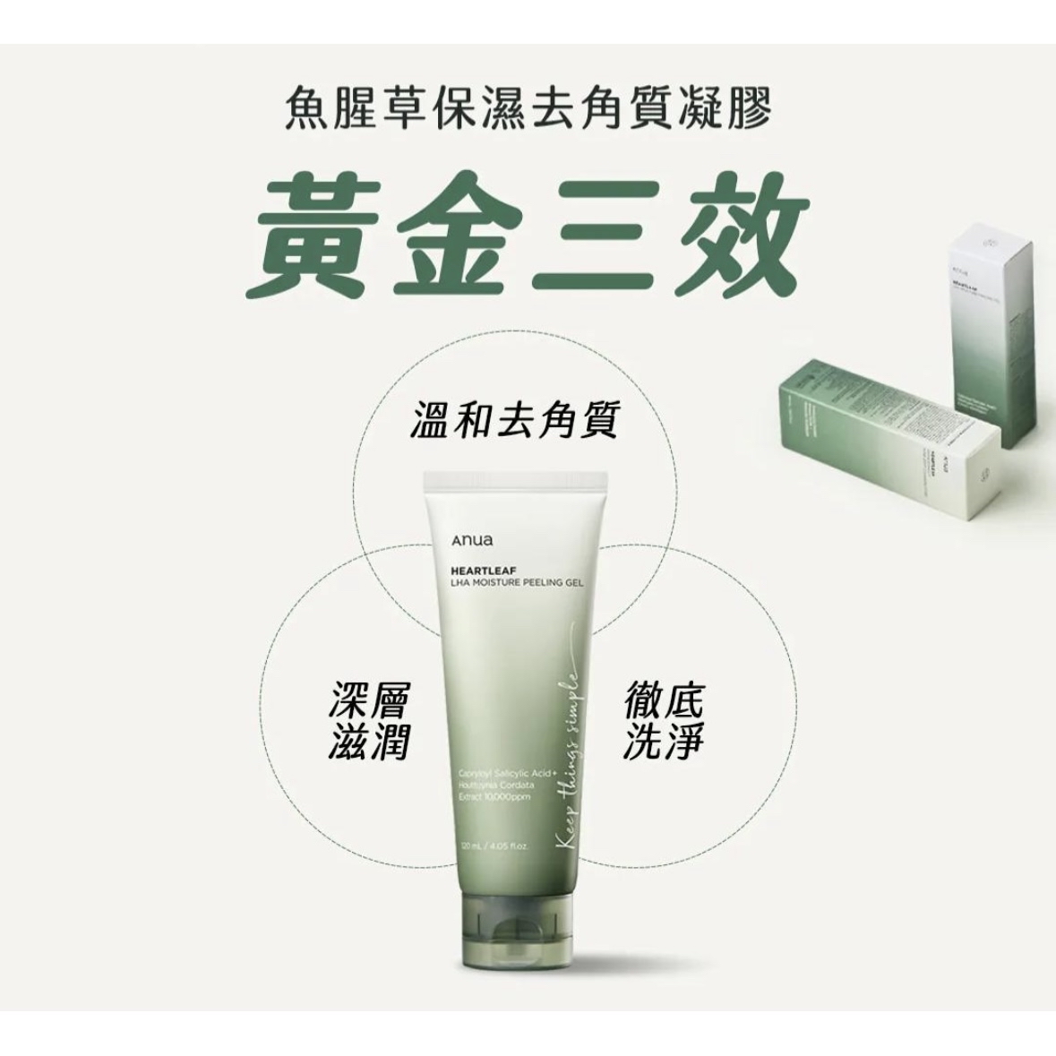 含魚腥草萃取和 LHA 成分,能溫和去除老廢角質,同時為肌膚提供深層保濕。其溫和配方適合各種膚質,特別是敏感肌膚,讓肌膚恢復光滑細緻,提升光澤度。 主要特點 溫和去角質:含有 LHA(脂溶性水楊酸)成分,能溫和去除老廢角質,疏通毛孔,改善肌膚粗糙,讓肌膚觸感細緻光滑。 深層保濕:富含魚腥草萃取和透明質酸,為肌膚提供深層保濕,維持肌膚水潤,防止乾燥。 舒緩肌膚:添加積雪草萃取,具有抗炎和舒緩作用,減少肌膚紅腫和刺激,提升肌膚防禦力。 溫和配方:不含人工香料、色素和酒精,適合各種膚質,特別是敏感肌膚。 質地清爽:凝膠質地清爽不黏膩,易於吸收,使用後肌膚感覺清新舒適。 主要成分 魚腥草萃取(Heartleaf Extract):具有抗炎、抗菌和抗氧化特性,能舒緩敏感肌膚,減少紅腫和刺激。 LHA(脂溶性水楊酸):溫和去除老廢角質,疏通毛孔,改善肌膚質地,提升光澤度。 透明質酸(Hyaluronic Acid):提供深層保濕,鎖住水分,讓肌膚保持水嫩光滑。 積雪草萃取(Centella Asiatica Extract):促進肌膚修復,舒緩敏感,增強肌膚屏障功能。 使用方法 潔面後,取適量凝膠於掌心。 均勻塗抹於乾燥的臉部,避開眼周和唇部。 輕輕按摩約 1 至 2 分鐘,讓凝膠與老廢角質充分結合。 以溫水徹底沖洗乾淨。 建議每週使用 1 至 2 次,可根據肌膚狀況調整使用頻率。