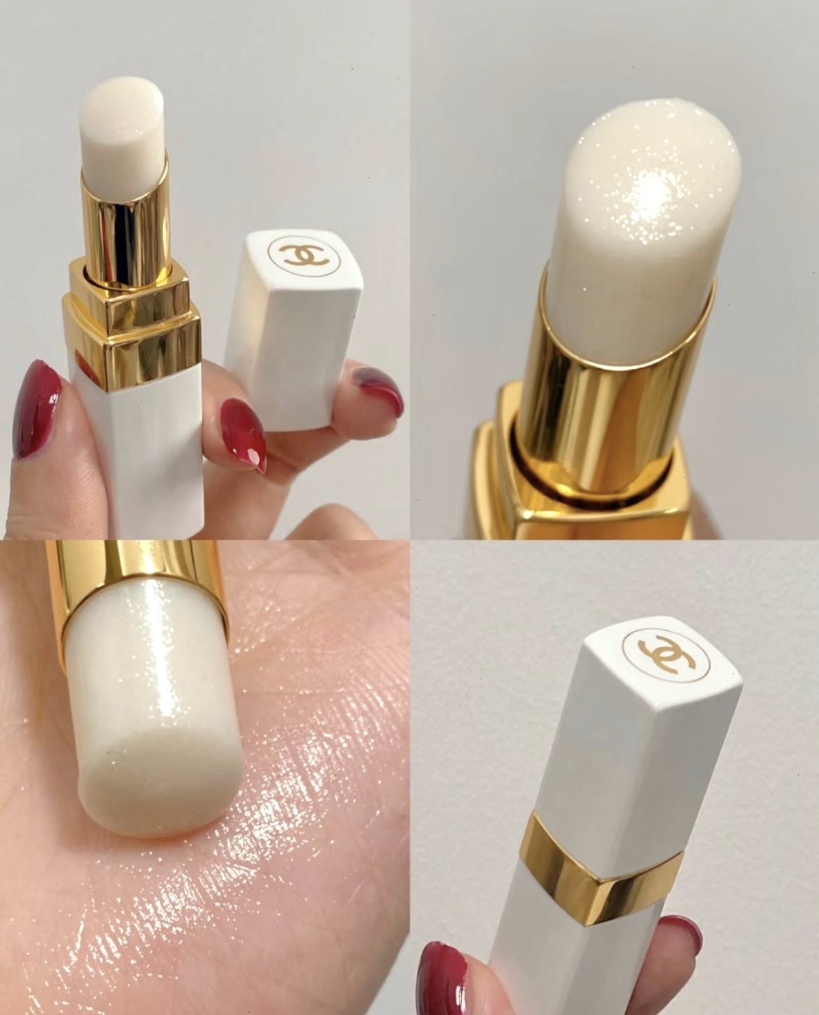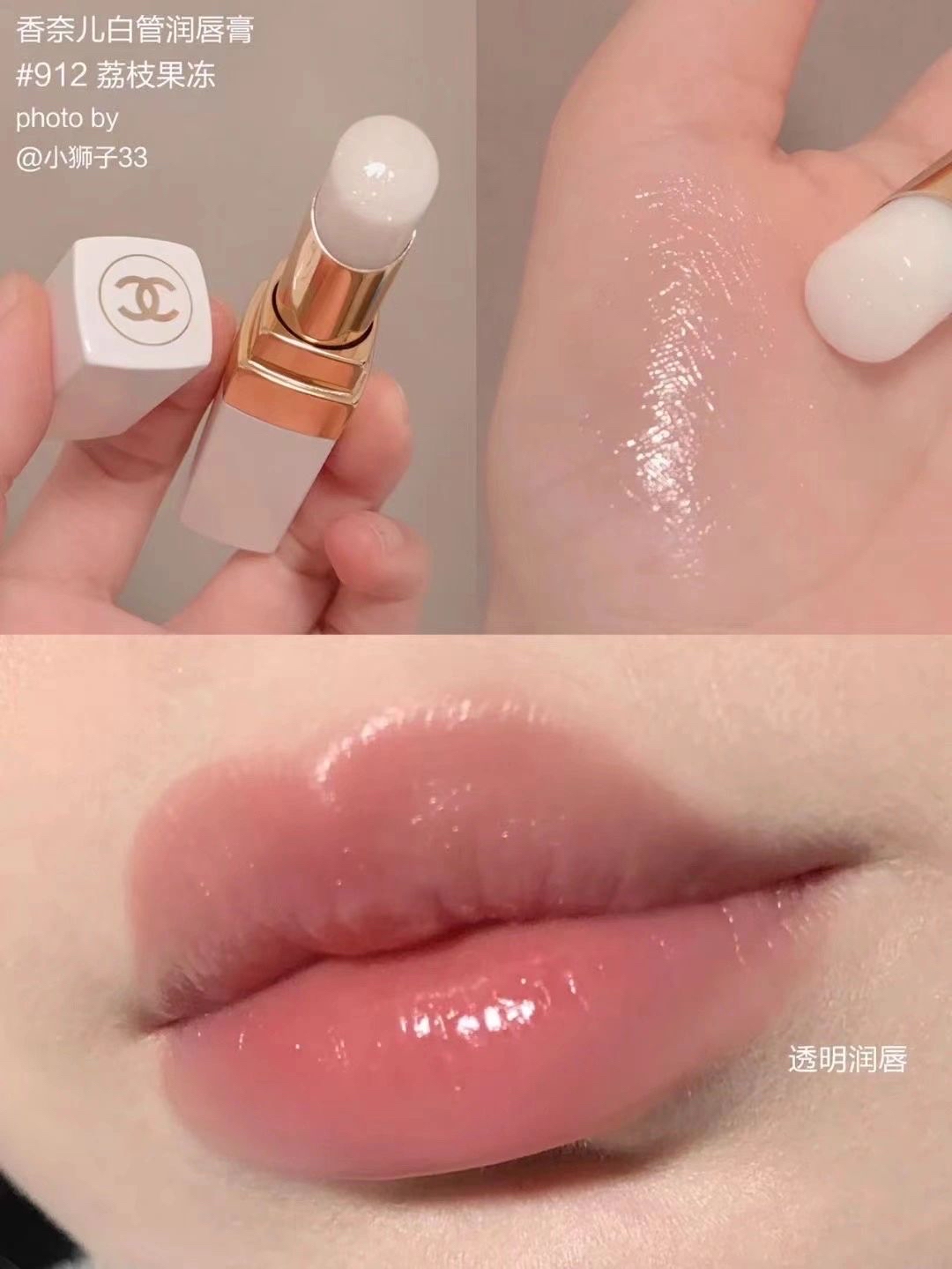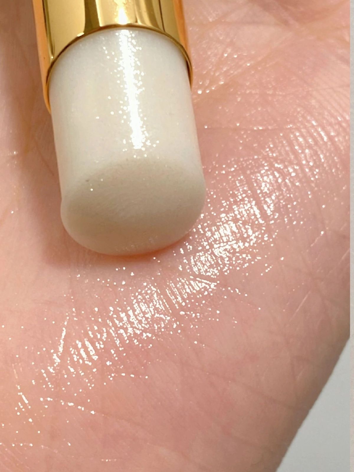 預訂7至10日 這支是透明色帶微閃的潤唇膏,上嘴自帶通透的光澤感,顯得嘴唇很健康!用作日常護唇或者唇膏打底都不錯! 帶碎鑽細閃的潤唇膏 上嘴呈現滋潤微閃的自然唇妝