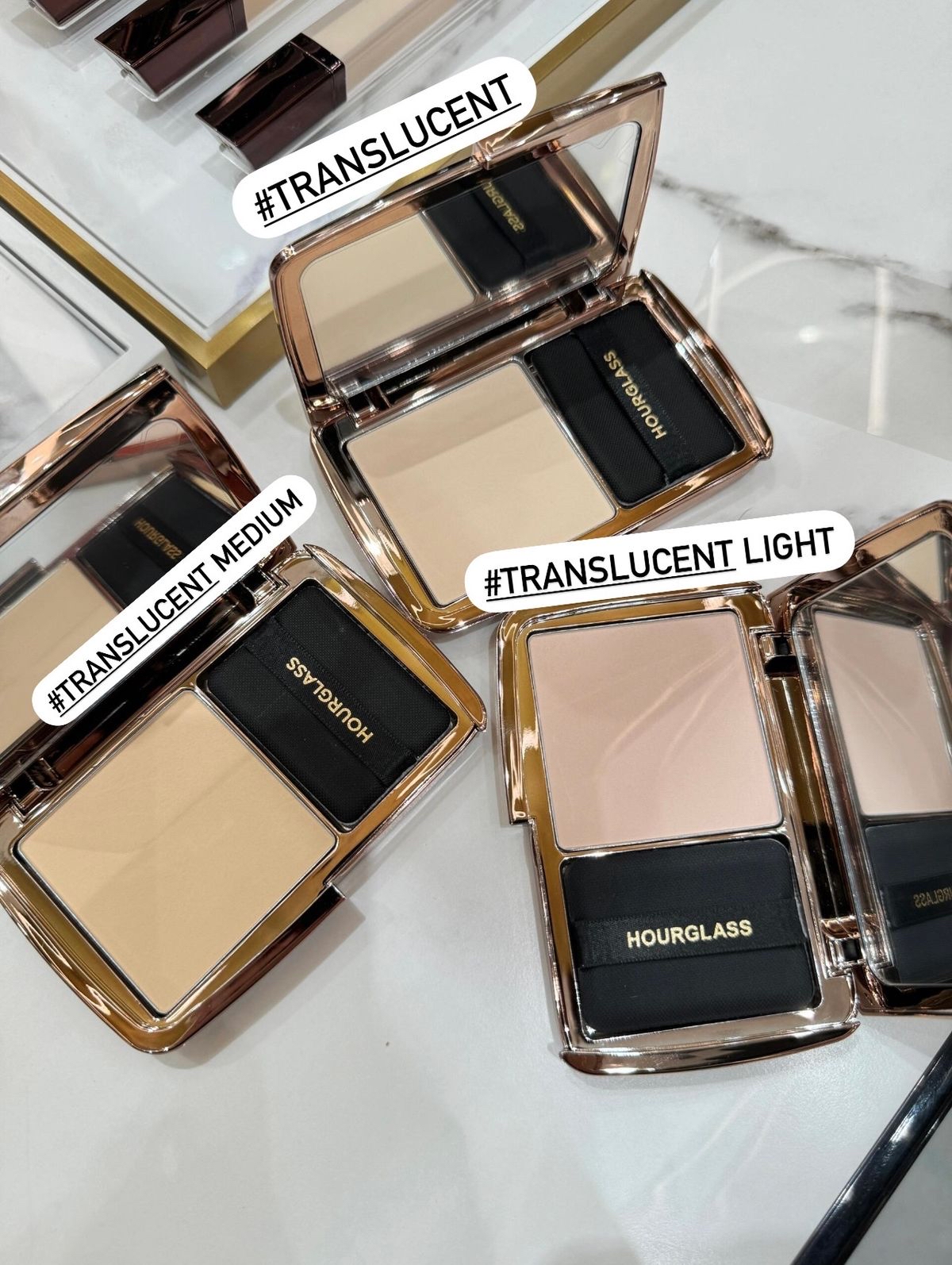 #translucent light #translucent medium 透出肌膚原生光感的蜜粉餅 斷貨王細膩粉質🙌🏻😍十級!毛孔柔焦磨皮!!! Hourglss定妝蜜粉餅 一盒封神 🥰🙌🏻 輕若無物 細膩粉質 一壓毛孔隱形😳😳磨皮程度~ 好癲 柔焦霧面透出點柔光 ~ 妝感干淨細緻,按壓薄薄一層 底妝質感UP 控油持妝 完全冇磨擦力 😍 絲滑零粉感 🦋單用偽素顏自然嬰肌 疊加底妝一樣自然柔霧感 ,保留輕光澤 完全不Cake粉 🔥自帶植絨面粉撲 有效均勻取粉,自帶鏡補妝都好方便 其實呢款是定妝蜜粉餅 發色清透只用做均勻膚色 基本選其一 都無問題! 🐒 如果平時無咩選色喜好 👉🏻 選Translucent 一定無錯😘 特點和優點 • 瞬間吸取油脂並減少油光 • 瞬間減少並減少毛孔的呈現 • 定妝和補妝雙重功效 • 便攜式包裝,隨時隨地展現完美妝容 • 持久空氣粉效果,整日散發迷人光采 • 透薄遮瑕,呈現自然無瑕膚質 • 不致粉刺,溫和不刺激 • 純素及不含動物測試 • 獲得純素協會(The Vegan Society)的純素商標認證